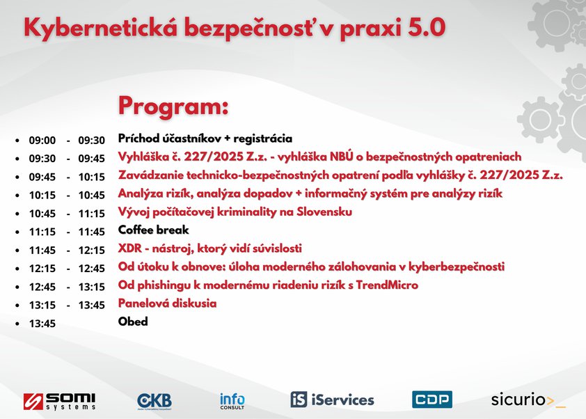 Práve v tom vidíme najväčší prínos podobných odborných stretnutí. Prinášajú nielen prehľad nových technologických riešení, ale aj konkrétne odporúčania, ako zvyšovať reálnu odolnosť organizácie.